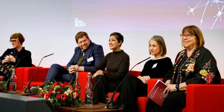 From left to right: Rachel Coldicutt, David Leslie, Rumman Chowdhury, Noura Al Moubayed and Wendy Hall