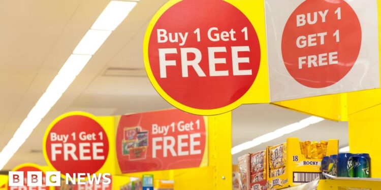 AFP via Getty Images A stock image of a buy one get one free promotion from a supermarket in London in 2011AFP via Getty Images