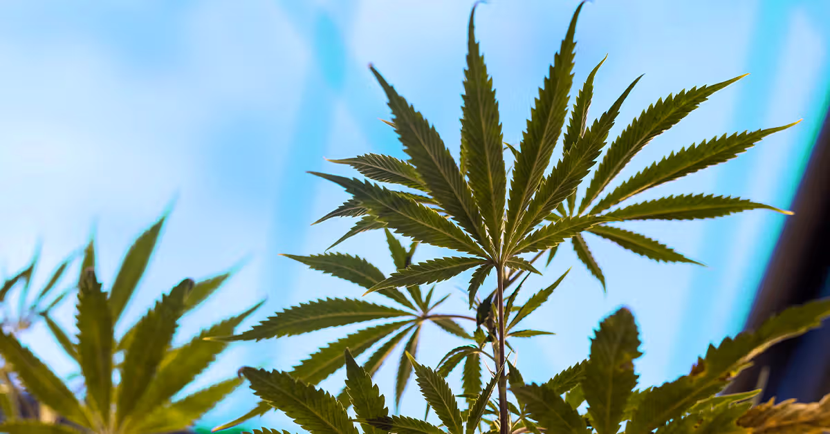 Cannabis plants growing in a greenhouseShare on Pinterest