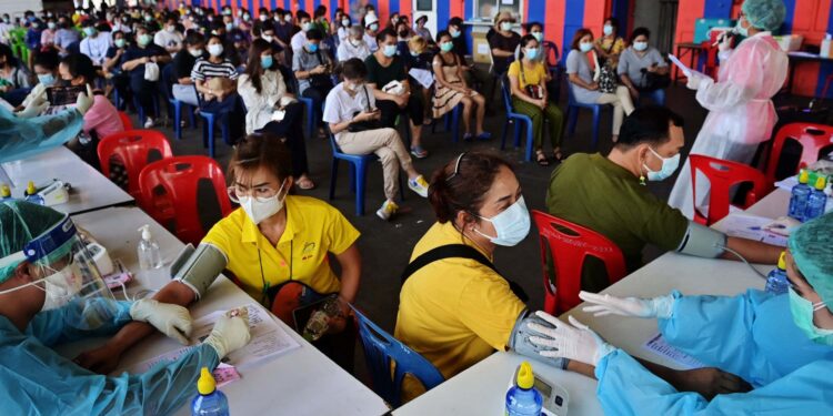 People receiving covid-19 vaccines in Bangkok, Thailand in 2021