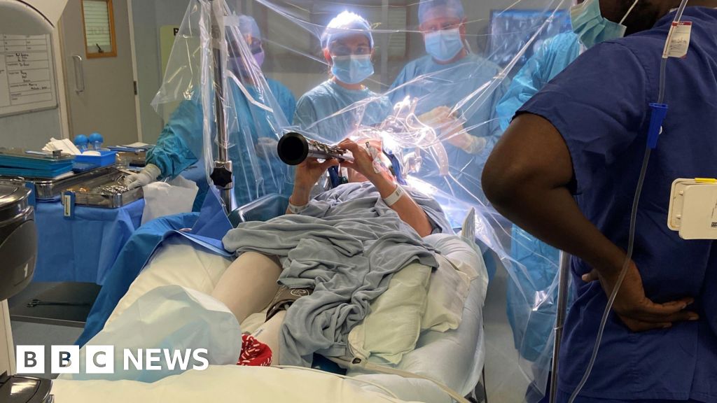 Ms Bacon was given a local anaesthetic to numb her scalp and skull and had immediate improvement in her fingers on the operating table, allowing her to play the clarinet easily.