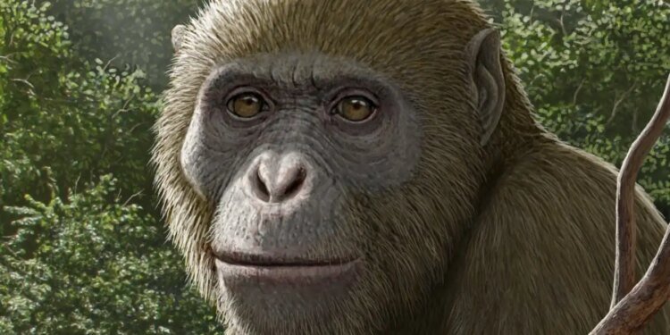 Artist’s reconstruction of Masripithecus moghraensis, an ape that lived around 17 million years ago