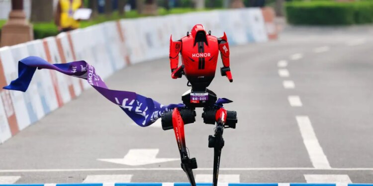 Last weekend, Sabastian Sawe set a new world record with a sub-2-hour marathon, but he isn’t the only one raising the bar for runners. On 19 April, a robot from Chinese smartphone maker Honor surpassed the human record for the half-marathon. In another event this month, a robot from Unitree came tantalisingly close to the human 100-metre sprint pace. These developments raise two big questions: how much quicker can humanoid robots get, and what’s the point of fast-running robots anyway?