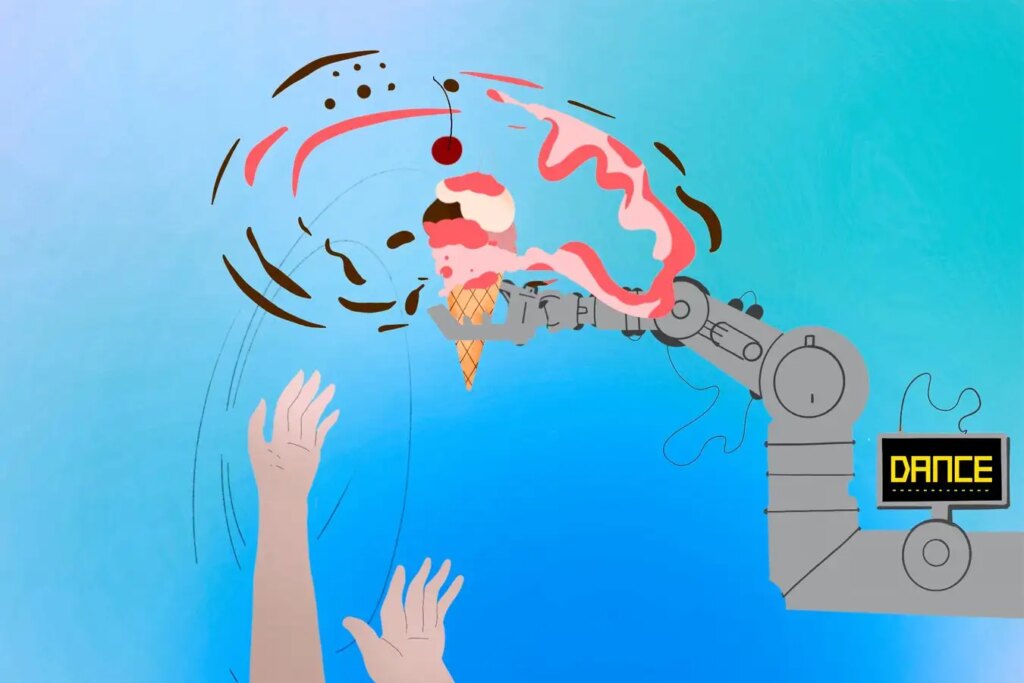 The robot was then tested on actual people. Compared with a control condition where the robot just handed over an ice cream without any mucking around, the tricks caused people to rate it as “more deceptive”. Apparently the tricks also “increased enjoyment-related outcomes (pleasure, engagement, challenge) and perceived robot competence, but decreased performance trust… perceived safety, and self-competence”.