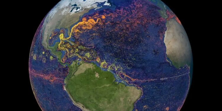 Visualisation showing the western boundary currents that form part of the Atlantic Meridional Overturning Circulation