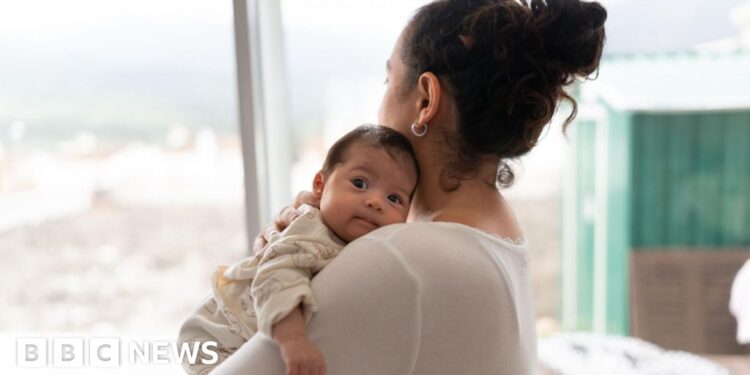 Getty Images A mother holds her baby upright to rest on her shoulderGetty Images