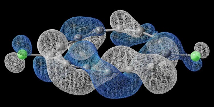 To make the molecule, the researchers used 13 carbon atoms and two chlorine atoms assembled into a ring-like shape on a thin surface of gold at an extremely cold temperature. They used two specialised microscopes – an atomic force microscope and a scanning tunnelling microscope – to control the atoms and map the properties of their electrons. In this type of molecule, the electrons aren’t tightly bound to their atoms; instead, the electrons spread across specific regions around the atoms like tiny waves of matter.