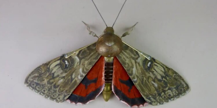 Magazine editor Eleanor Parsons and I began by enthusing about each of the featured species. “Ooh widgeon! Curlew! Long-tailed tits!” Next, we played the “which-would-you-buy” game, only to discover that the piece I liked the most was the least practical: an astonishing found-object sculpture of a red underwing moth (above) by Dean Patman. At the time of writing, it is still available, if you share my appreciation of moths and have £1750 to spare.