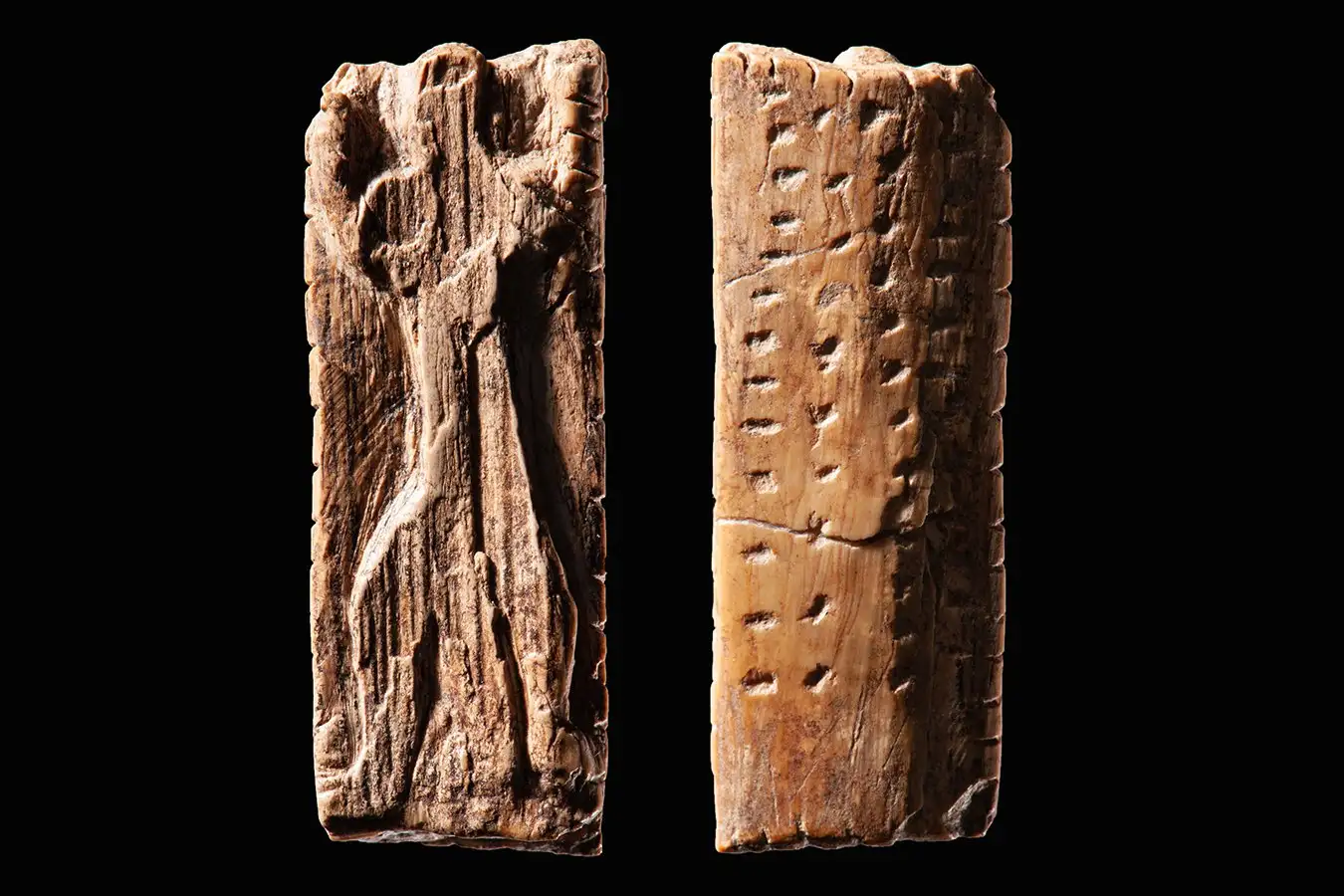 This mammoth figurine from Vogelherd cave in Germany, approximately 40,000 years old, bears multiple sequences of crosses and dots on its surface