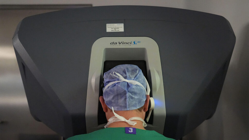 Use of telesurgery — operating on a patient remotely using a surgical robot -…