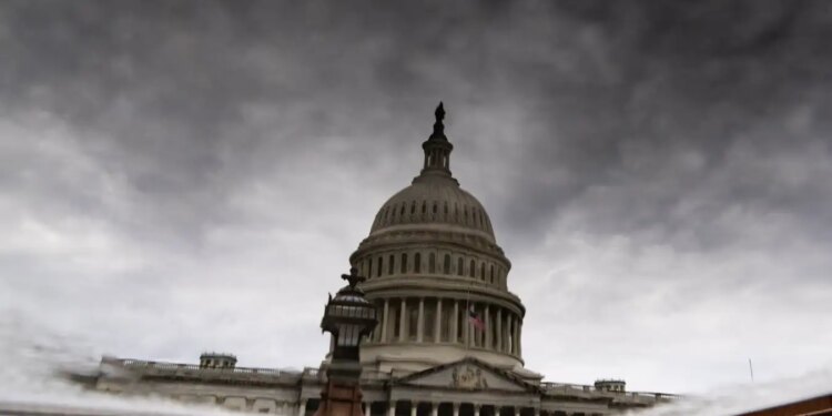 UNITED STATES - MAY 9: An inverted image of the U.S. Capitol is reflected in puddle on the East Front on Tuesday, May 9, 2023. (Tom Williams/CQ-Roll Call, Inc via Getty Images)