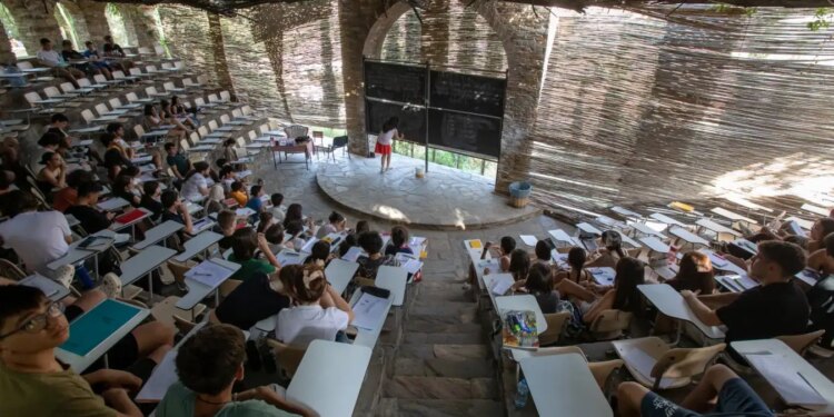 Photographer Piero Castellano recently captured Nesin teaching there. In the above photograph, Nesin’s eyes are fixed on a blackboard set against a tree, some leafy vines, a stone floor and a stone wall. Castellano says that the tree, the vines and the stones are crucial to Nesin’s vision. He wanted the village to be in a secluded location, where students could immerse themselves in maths and communal living and learn better by being constrained less.