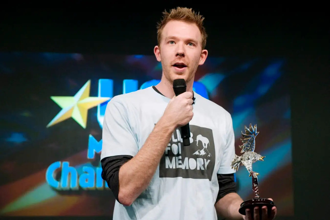 Nelson Dellis holds his trophy after winning the annual USA Memory Championships in New York in 2011