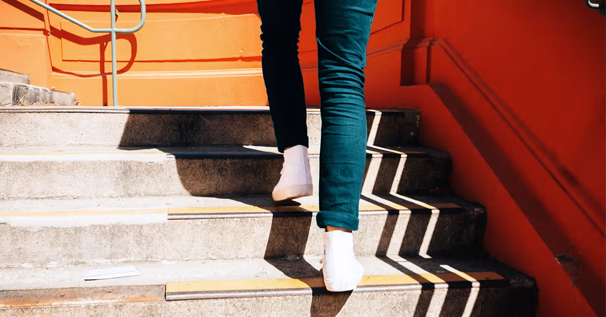 Image of a person's feet walking up stairs outsideShare on Pinterest