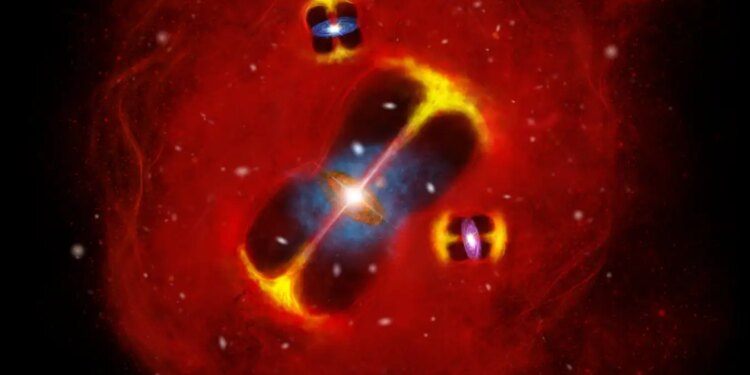 Its strange heat could be due to the presence of several particularly active galaxies among its members, including at least three that are pumping out enormous jets of energy. Those jets, and the frequent bursts of star formation, could heat up the gas far quicker than we previously suspected.
