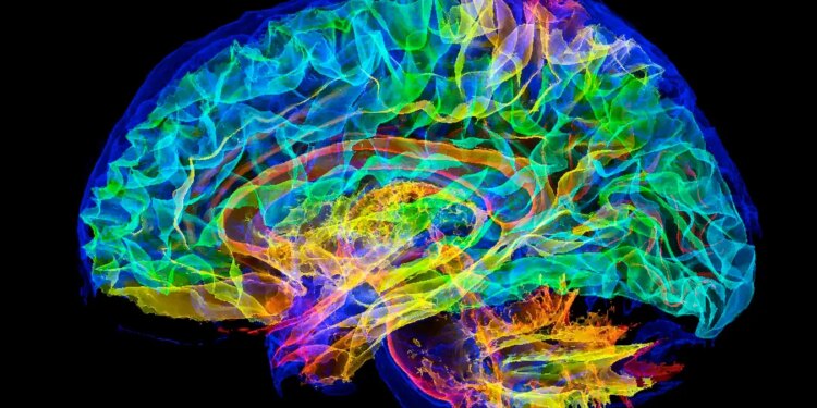 Digitally enhanced 3D magnetic resonance imaging (MRI) scan of a human brain