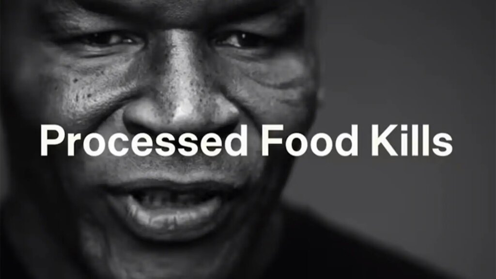 What followed was a laugh that sounded more mocking than lighthearted, the dramatic crunch of an apple, and an all-caps banner across the screen: “Processed food kills.”