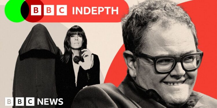 BBC A treated image of Alan Carr posing in a framed portrait BBC