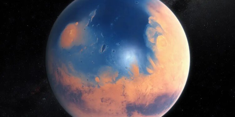 An artist’s impression of Mars millions of years ago, when it had more water on its surface
