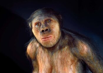 A model of an Australopithecus homininCredit: Cro Magnon/Alamy Thirteen hominin teeth have been discovered in Ethiopia in layers of volcanic ...