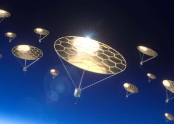 An illustration of solar-powered levitating discsSchafer et al. Nature Fingernail-size discs that levitate in sunlight could someday carry sensors through ...