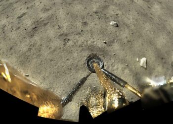 A photo of the lunar surface taken by China’s Chang’e 5 lander, which collected samples in 2020CNSA/Xinhua/Alamy A solar-powered device ...