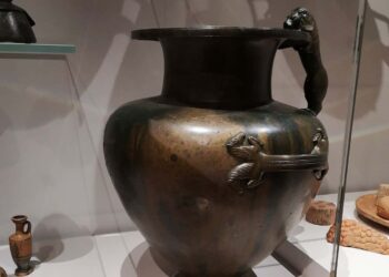 An ancient Greek bronze jar on display at the Ashmolean Museum in Oxford that was found to contain honeyAmerican Chemical ...