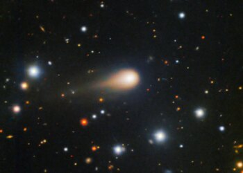 A deep image of 3I/ATLAS captured by the International Gemini Observatory in Chile, showing the coma of gas and dust ...