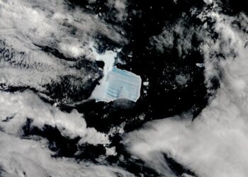 Satellite view of iceberg A23a in the Southern Ocean, showing meltwater on its surfaceNASA Meltwater on a city‑sized iceberg in ...