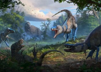 Artist’s impression of a pack of Nanotyrannus attacking a juvenile T. rexAnthony Hutchings A dinosaur fossil thought to be a ...
